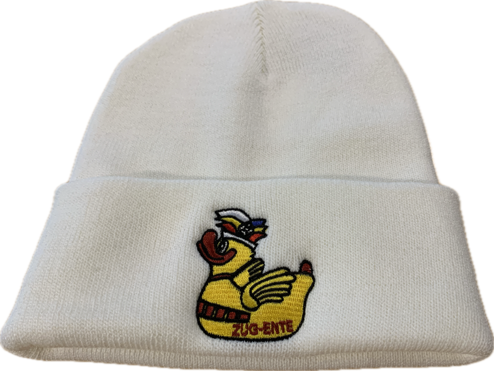 Die Beanie – „altdeutsch“ auch Strickmütze genannt – hält Kopf und Ohren richtig warm. Und mit der quietschgelben Zugen(d)te auf der Front sieht sie auch noch richtig fastnachtlich-lässig aus! Unsere Zugen(d)ten-Beanie gibt’s in drei Farben, sie ist doppelt gestrickt, besteht zu 100% aus Polyacryl und passt – one size fits all – auf jeden Kopf.