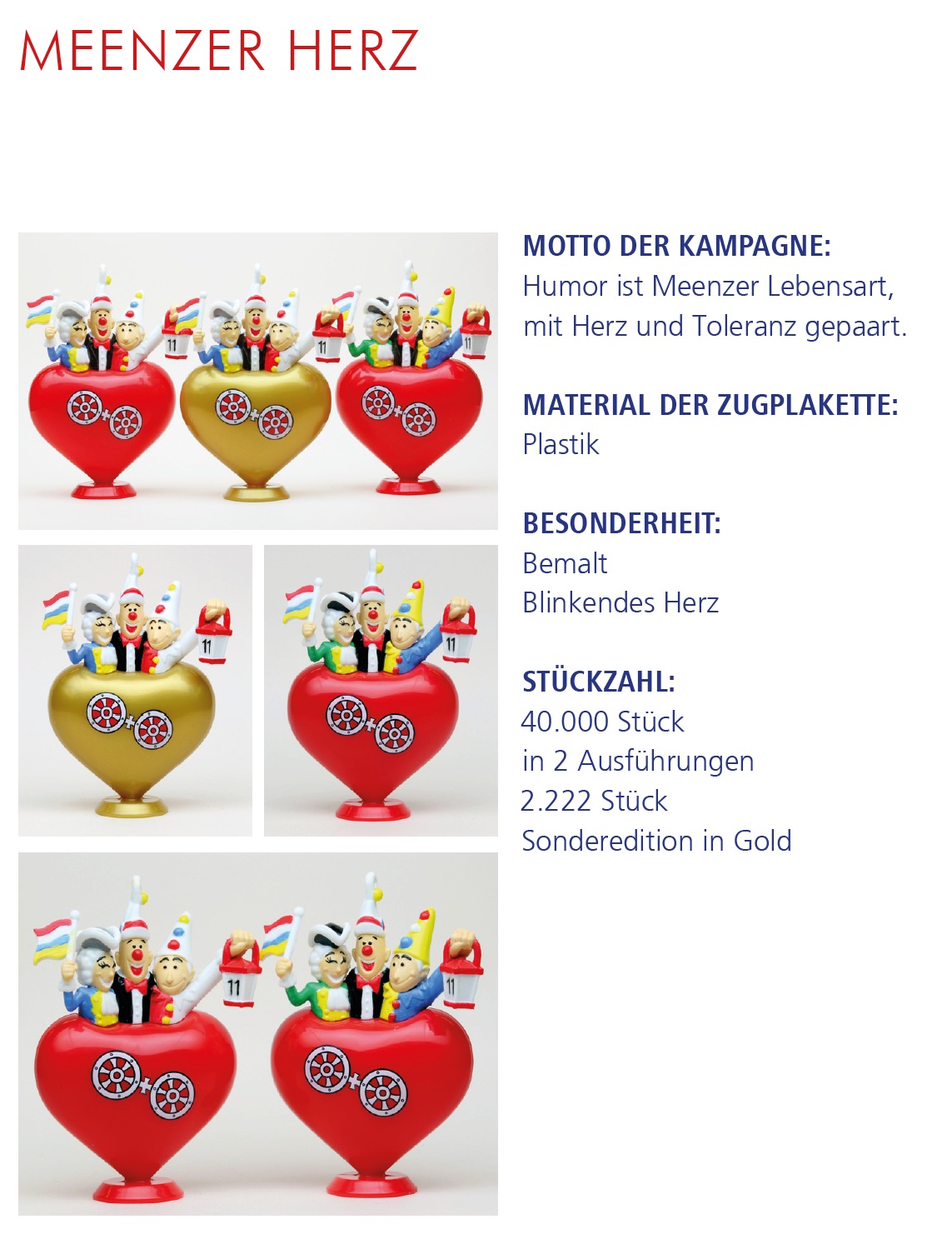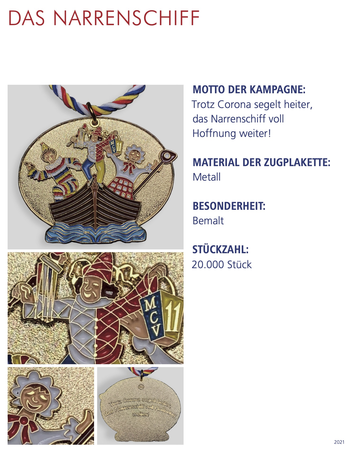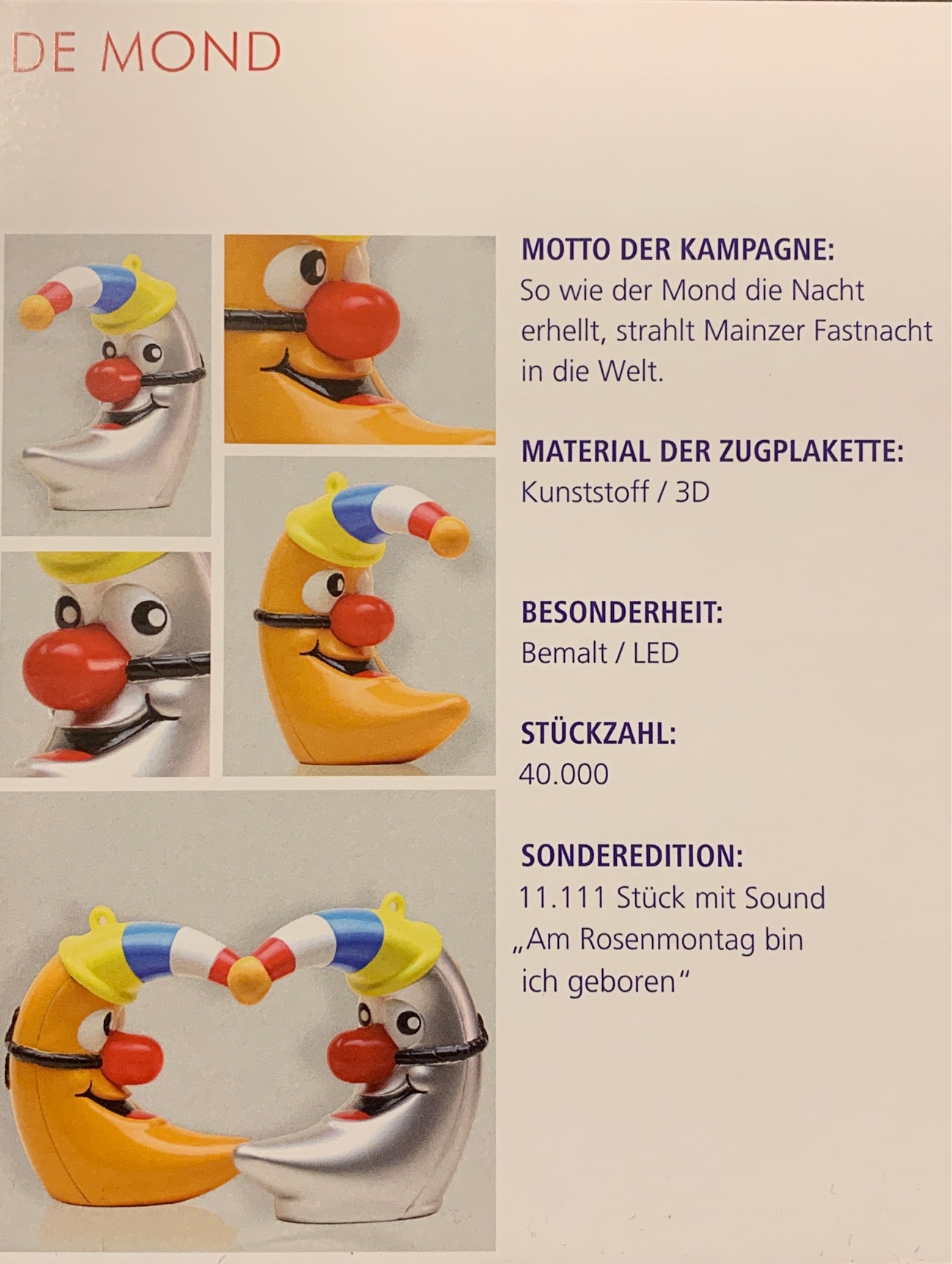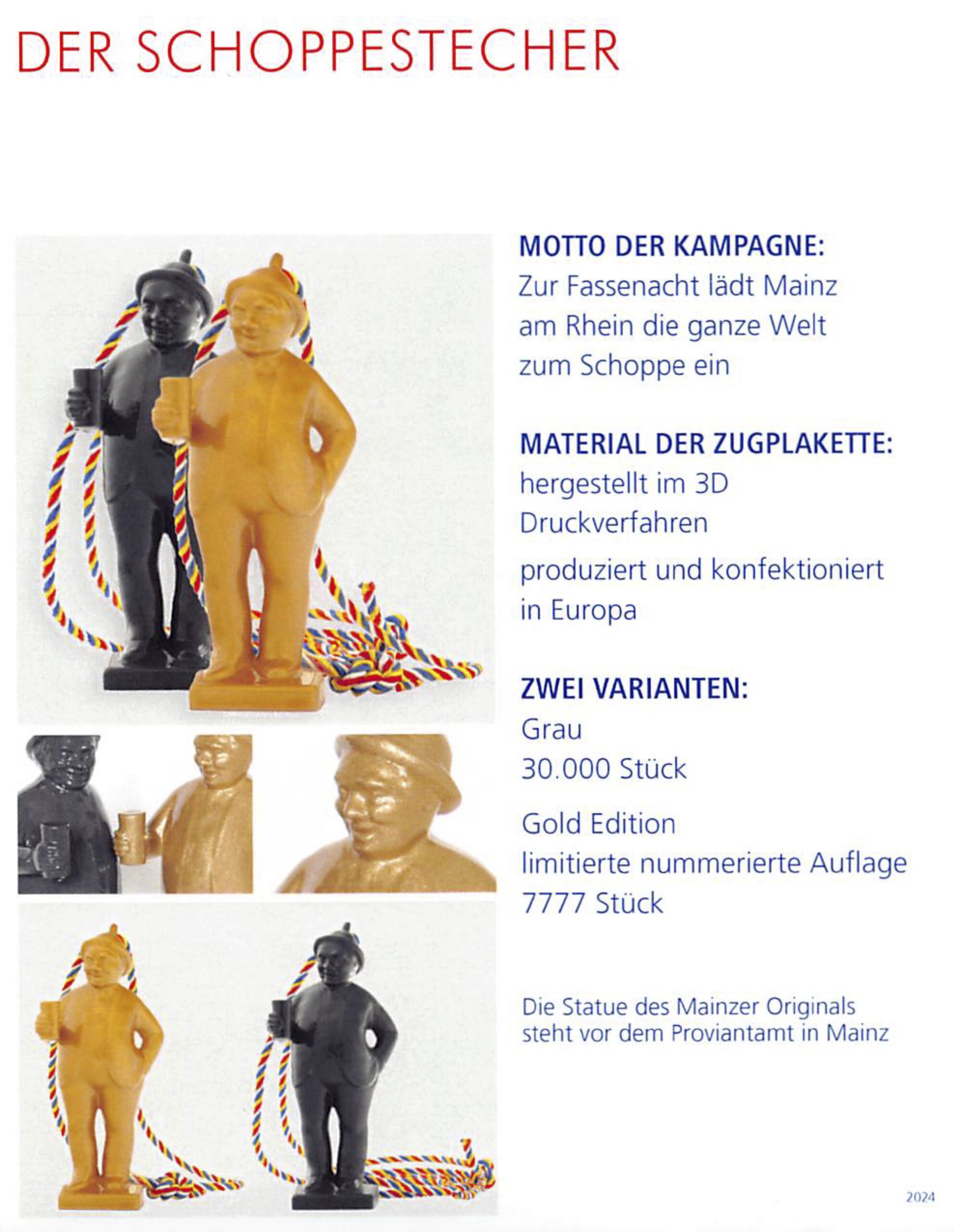 | Jahr | Einkleber 2017 "De Dom", Einkleber 2018 "De Mond", Einkleber 2019 "Drei Gardisten", Einkleber 2020 "Meenzer Herz", Einkleber 2021 "Das Narrenschiff", Einkleber 2022 "Närrische Versuchung", Einkleber 2023 "Annabell und Kevin", Einkleber 2024 "Der Schoppestecher", Einkleber 2025 "Der Plakettenverkäufer" |
