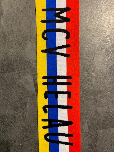 Der neue Fastnachtsschal des MCV. Unverkennbar vierfarbbunt, mit Zugente und ausgestattet mit zwei praktischen Taschen ist er nicht nur ein perfektes Accessoire für die Meenzer Strassenfastnacht, sondern auch ein wärmender Begleiter für die gesamte 5. Jahreszeit. Das Must-Have-Item in jedem Narrenschrank. Länge: ca. 175 cm